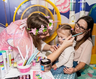 Profesionalus veidukų piešimas – viena mėgstamiausių vaikų pramogų! Spalvingi piešiniai, blizgučiai ir mėgstami herojai akimirksniu sukuria šventinę nuotaiką ir paverčia kiekvieną vaiką pasirinktu personažu.