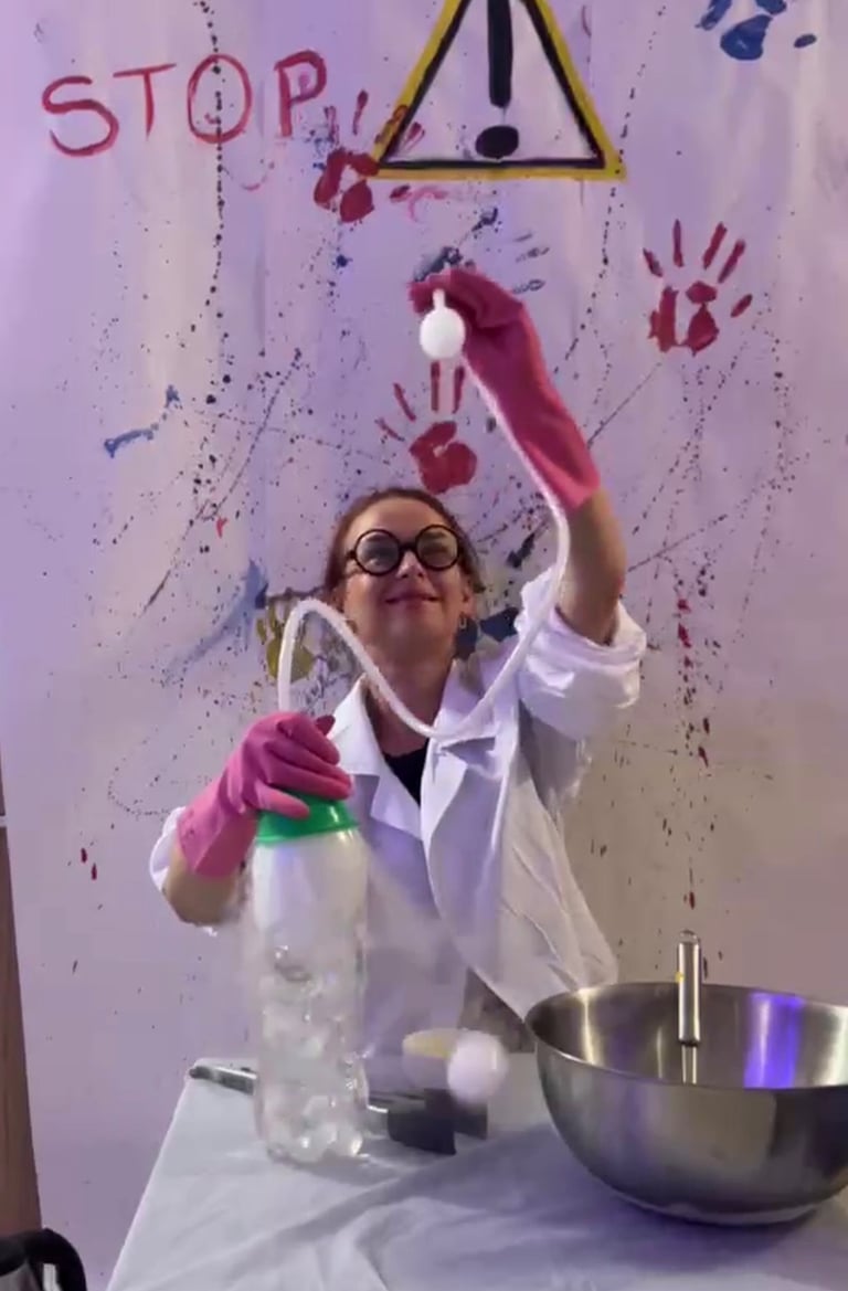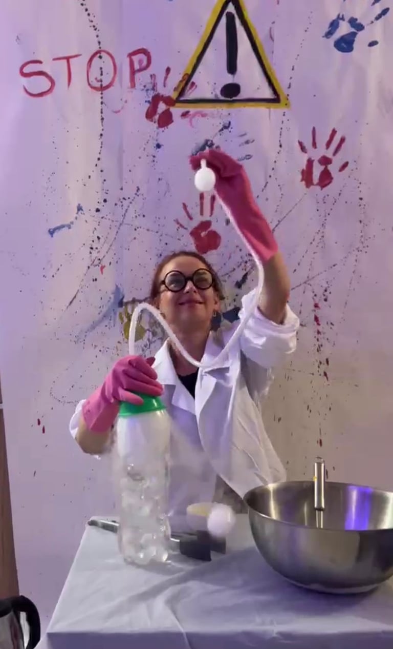 Šventės metu vaikai atlieka saugius, spalvingus ir įtraukiančius eksperimentus, stebi įdomias reakcijas ir patys dalyvauja kūrybiškuose bandymuose. Mokslininkė skatina smalsumą, drąsą klausti ir džiaugtis atradimo džiaugsmu.